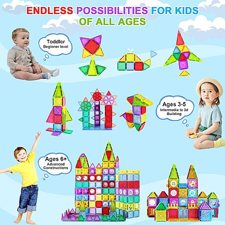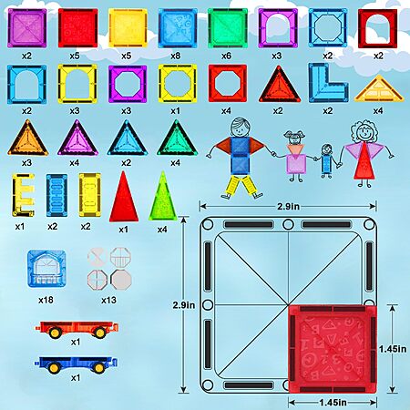 ShowyLive Magnetic Tiles for Kids Ages 4-8, 110PCS Set with 2 Cars, Magnetic Building Tiles $10.89