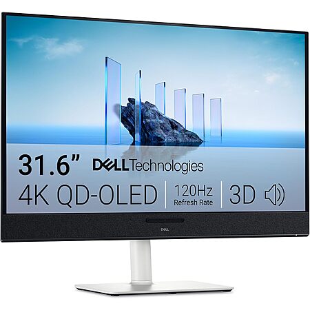 Model: Dell 32 Plus 4K QD-OLED Monitor S3225QC - 31.6-inch (3840 x 2160) 120Hz 0.03ms Display, AI-Enhanced 3D Spatial Audio, Height/Tilt/Swivel/Slant Adjustment - Ash White