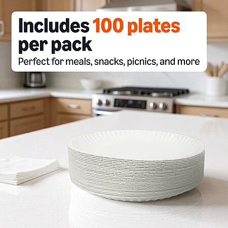Amazon has 100-Pack 9" Amazon Basics Uncoated White Paper Plates on sale for $3.50 - 5% when you checkout via Subscribe & Save = $3.32. Shipping is free with Prime or on $35+ orders.