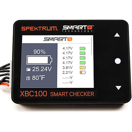 The Spektrum XBC100 Smart Battery Checker is a must have tool for any pilot or drivers pit box. More than a battery checker, it features a built-in cell balancer, integrated servo tester and driver, and Spektrum Smart battery connectivity.
