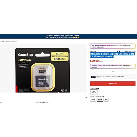 Select GameStop Stores: 512GB GameStop Express MicroSD Card for Nintendo Switch 2