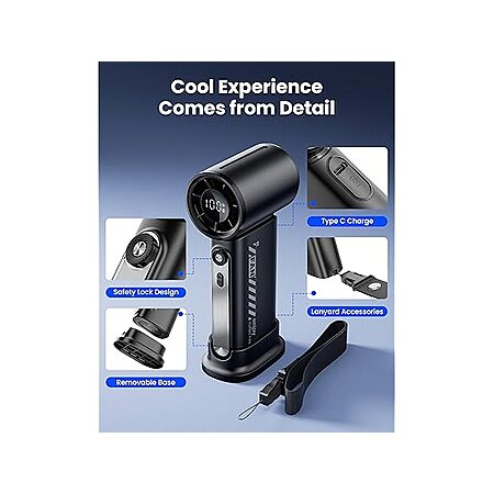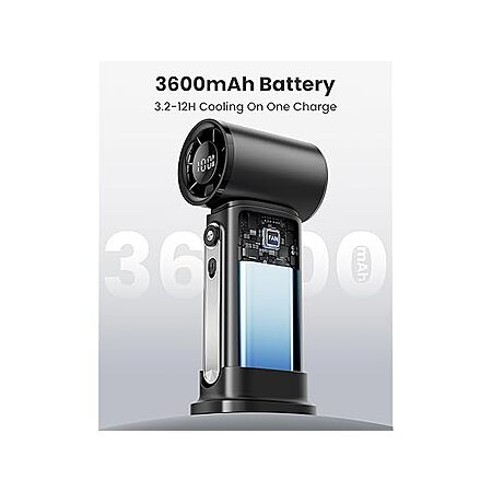 Woot! has Koonie High-Speed Portable Handheld Fan, 19000 RPM, 100-Speed Mini Turbo, 3600mAh, 12H Runtime, Digital Display, 5″, Rechargeable on sale for $9.49.