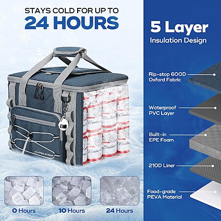 $28.76*:Maelstrom Soft Sided Cooler Bag, 30/40 Can Collapsible Insulated Ice Chest, Large Leakproof Portable Storage,9.8"D x 15.2"W x 10.9"H