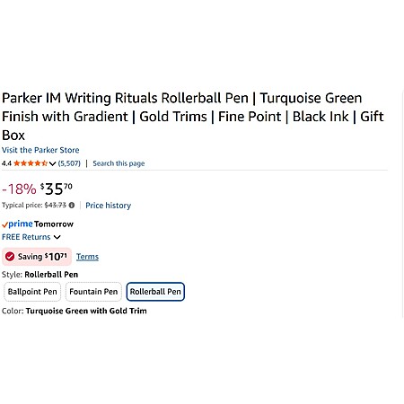 Parker IM Writing Rituals Rollerball Pen, Turquoise Green with Gradient, Gold Trim - Amazon w/YMMV coupon - $24.99