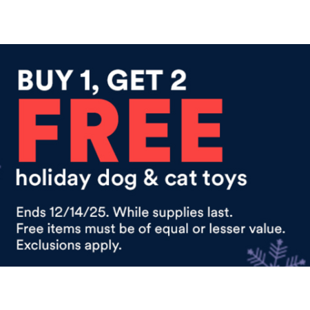 Holiday Themed Dog & Cat Toys, Buy 1 Get 2 Free (discount automatically applied in cart with qualifying purchase). Select free store pick up where stock permits. Otherwise,