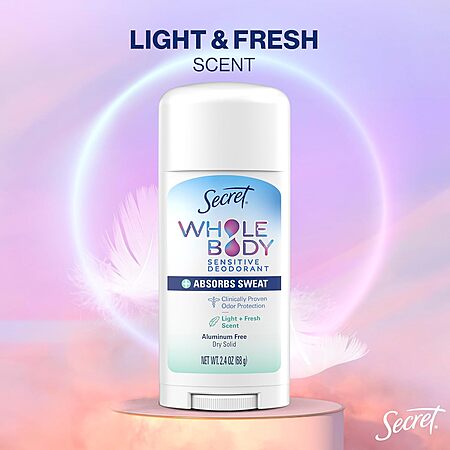 [S&S, AC] $5.05: 2.4-Oz Secret Whole Body Deodorant (Light and Fresh) at Amazon