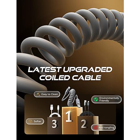 2-Pack 4' LISEN USB A to USB C 3.1A Coiled Carplay Cables (Grey) on sale for $9.99 - $5 (50%) off when you 'clip' the