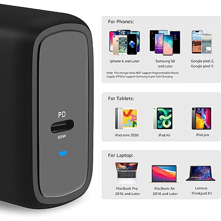 $14.99*: Amazon Basics 65W One-Port GaN USB-C Wall Charger at Amazon