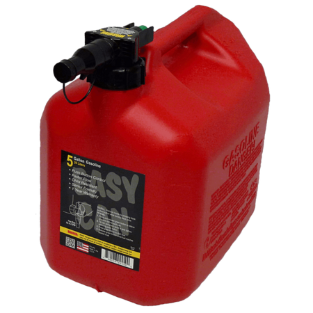 5 Gallon Portable Fuel Container (Gas Can) with wide stable design for added safety. Patented nozzle with Auto-Stop™ feature, along with a rear handle. Multi-layer construction with barriers inhibiting emissions. C.A.R.B., ASTM, E.P.A, compliant. Includes patented, regulated Flame Mitigation Device (FMD) Design allowing safe and ease of use.. Key Features: Simple push button control Patented nozzle with Auto-Stop™ feature Faster flow up to 3 GPM Child resistant EPA and CARB compliant 1 year manufacturer?s warranty FMD technology