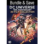 Celebrate the DC Universe 10th Anniversary with a 30-Film Collection of your favorite DC stories from Superman: Doomsday to Batman and Harley Quinn.