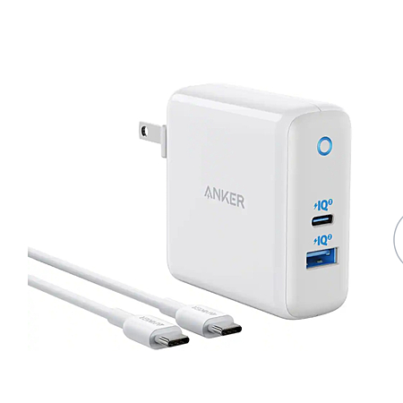 Anker - PowerPort PD 60W GaN Fast Charger and USB-C to C Cable 6ft for Macbook and Mobile Devices - White $24.99