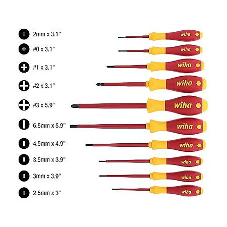 $45.99*:Wiha 32093 Slotted and Phillips Insulated Screwdriver Set, 1000 Volt, 10 Piece
