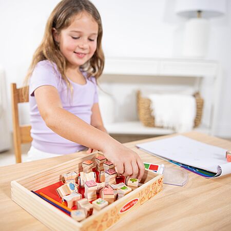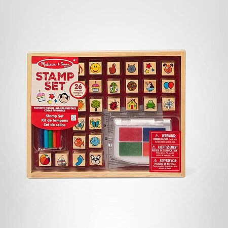 Melissa & Doug Wooden Stamp Set, 4-Color Stamp Pad $11.89 + Free Shipping w/ Prime or on $35+
