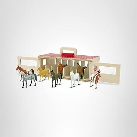 Model: Melissa & Doug Take-Along Show-Horse Stable Play Set With Wooden Stable Box and 8 Toy Horses