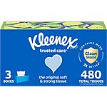 3-Pack 160-Count Kleenex Trusted Care 2-Ply Facial Tissues