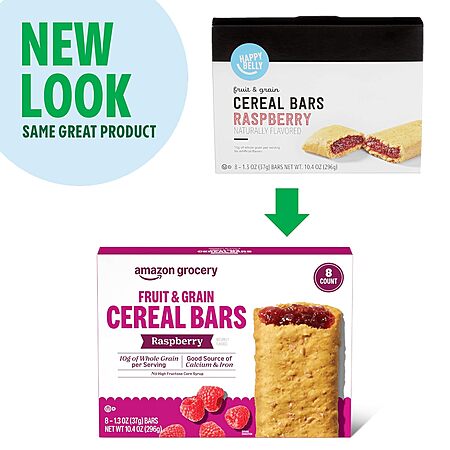 8-Pack 1.3-Oz Amazon Grocery Fruit & Grain Cereal Bars (Raspberry; Previously Happy Belly, Packaging May Vary) for $1.51 - 5% when you check out via Subscribe & Save =