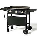 | Product Description: | A Propane Griddle, perfect for any outdoor space like gardens or patios, offers quick, adjustable heat without needing electricity. Its portable design makes it great for everything from backyard BBQs to camping. With even heat distribution, it's ideal for cooking a variety of dishes, providing a unique flavor that enhances outdoor gatherings with friends and family. 【Large Cooking Area】 The KingChii 28-inch propane griddle offers a spacious 420 square inches of cooking space, capable of grilling up to 25 burgers or 15 pancakes at once, making it perfect for family gatherings or large events. 【Multifunctional Cooking Platform】 From pancakes for breakfast to grilled cheese sandwiches for lunch and traditional barbecue for dinner, this griddle covers all your cooking needs, allowing you to prepare a variety of meals throughout the day. 【Consistent and Powerful Heat Control】 With three independently controlled burners delivering a total of 29,700 BTUs, the griddle ensures even heat distribution across the entire surface. Whether you’re searing steaks at high heat or gently grilling seafood at a lower temperature, you can precisely manage each cooking zone for perfect results every time. 【Easy to Clean】 The rear grease management system simplifies cleanup by channeling food debris and grease into the rear cup, making maintenance quick and hassle-free. 【Convenient Folding Side Shelves】 Two side shelves provide ample space for storing seasonings, plates, and tools, and can double as prep stations for handling ingredients. The foldable design makes it easy to store and transport, offering added flexibility and convenience. 【Practical Extra Features】 The griddle is equipped with a towel bar, bottle opener, and hooks for enhanced usability. Whether grabbing a paper towel or hanging your cooking tools, these thoughtful additions make your outdoor cooking experience even more efficient and enjoyable. SPECIFICATIONS: Brand: KingChii Model: KC1995C3 Special Feature: Utensil Hook, Wheels, Side Shelf Frame Material: Metal Installation Type: Free Standing Fuel Type: Propane Color: Black PACKAGE INCLUDES: 1 x Griddle 1 x Accessory Kit 1 x Mamual |
