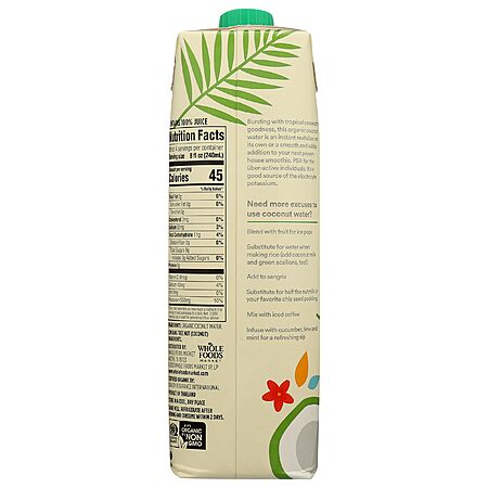 Model: 365 by Whole Foods Market, Organic Coconut Water, 100% Pulp-Free Juice, 33.8 Fl Oz