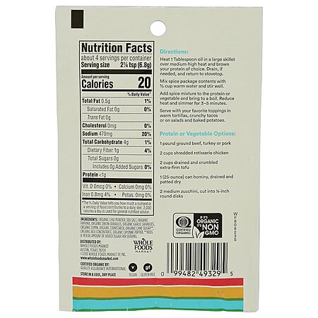 1-Oz 365 by Whole Foods Market Organic Taco Seasoning for $0.78 - 5% when you check out via Subscribe & Save =