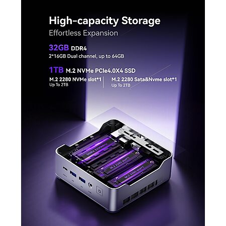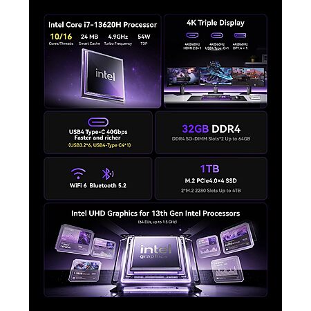 KAMRUI Hyper H2 Mini Gaming PC, in-tel Core i7-13620H Mini Computers (Beats 1280P, 10C/16T, up to 4.9GHz), 32GB RAM 1TB PCle4.0 SSD Desktop Computer, Triple 4K Display $509.99