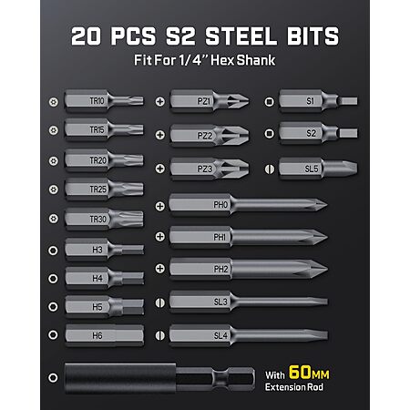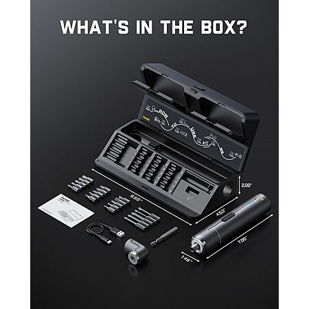Model: Fanttik S2 Pro Electric Screwdriver, Cordless Screwdriver Set, 7 Torque Settings, 0.5 to 6N.m, 20 Magnetic Bits, 1/4''Hex Shank, with 90° Angle Adapter, for Furniture, Household Repairs
