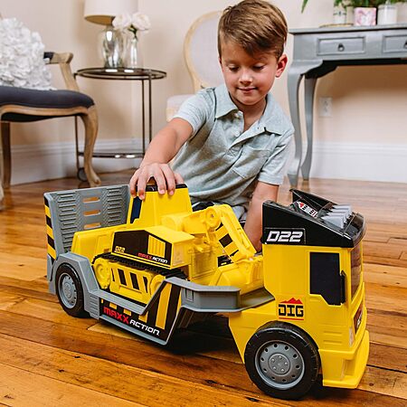 Sunny Days Entertainment Maxx Action 2-N-1 Mega Mover – Construction Truck and Trailer with Lights, Sounds and Motorized Drive, Yellow, for $19.99 @ Amazon