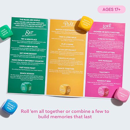 Amazon has Let's Get Deep® Date Night Dice by Relatable, Roll for 200+ Unique Date Night Ideas for $7.49. Shipping is free with Prime or on $35+ orders.