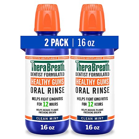 Amazon has 2-Pack 16 Fl Oz TheraBreath Healthy Gums 24-Hour Oral Rinse, Clean Mint for $17.58 - 25% when you 'clip' the coupon on product page - 5% with Subscribe & Save = $12.30. Shipping is free with Prime or on $35 orders.