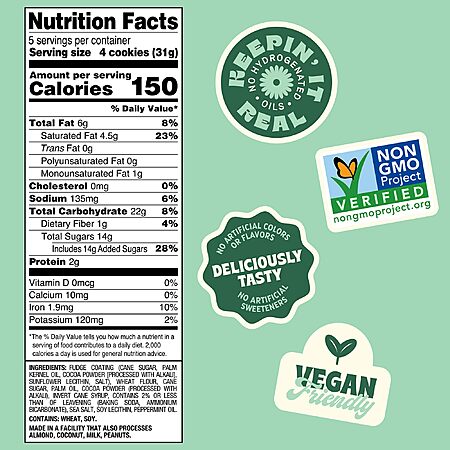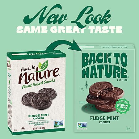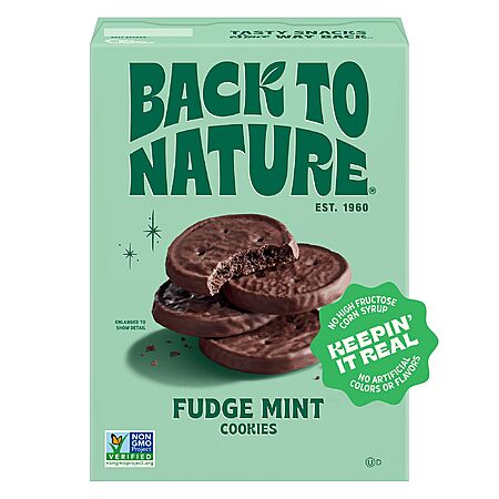 Model: Back to Nature Fudge Mint Cookies, Plant-Based, Non-GMO, Vegan Friendly, Made with Wheat Flour, Snack Happy, 5.5 oz Box