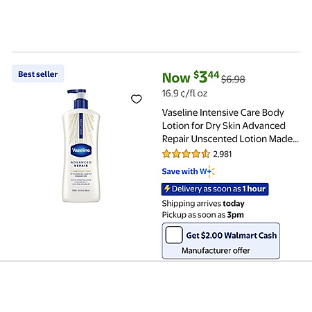 Vaseline Intensive Care Body Lotion for Dry Skin Advanced Repair Unscented Lotion Made with Ultra-Hydrating Lipids + Vaseline Jelly to Repair Extremely Dry Skin, 10 fl oz $3.98