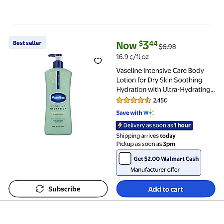 Vaseline Intensive Care Hand and Body Lotion For Dehydrated Skin Soothing Hydration Dry Skin Lotion with Aloe Vera Extract & Ultra-Hydrating Lipids, 10 fl oz $3.98