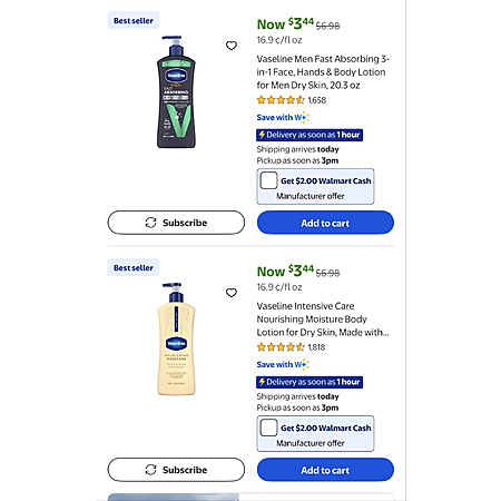 Vaseline Men Extra Strength 3-in-1 Face, Hands & Body Lotion For Men, for Dry Skin with Ultra-Hydrating Lipids & Vaseline Jelly Micro-droplets, 10 fl oz $3.98