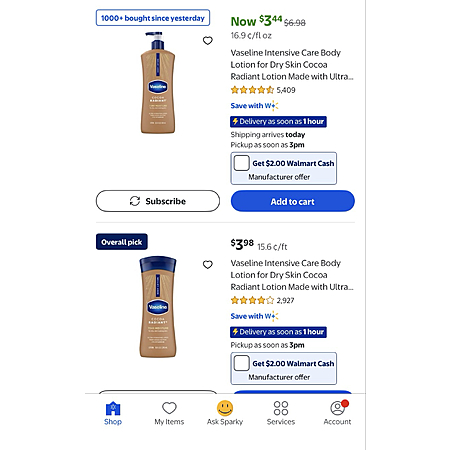 Vaseline Intensive Care Body Lotion for Dry Skin Cocoa Radiant Lotion Made with Ultra-Hydrating Lipids and Pure Cocoa Butter for a Long-Lasting, Radiant Glow, 10 fl oz $3.98