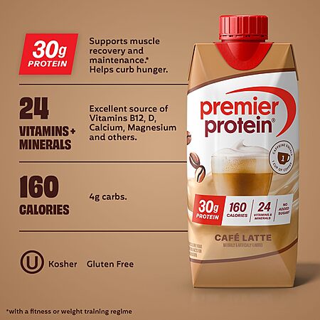 Amazon has 12-Pack 11oz Premier Protein 30g Protein Shake (Cafe Latte) on sale 2 for $43.14 - $2.16 (5%) when you check out with Subscribe & Save = 2 for $40.98. Additionally, you will qualify for a $10 Amazon Promotional Credit. Shipping is free.