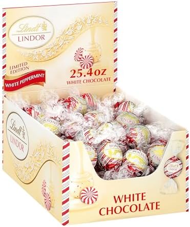 Model: Lindt LINDOR Holiday White Chocolate Peppermint Candy Truffles with Smooth Peppermint Truffle Center, 25.4 oz., 60 Count (2023)