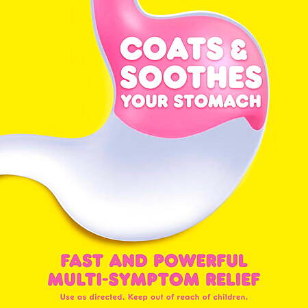 | Product Description: | Pepto Bismol Chewable Tablets, Fast 5-Symptom Stomach Relief, For Upset Stomach Relief, Nausea Relief, Heartburn Relief, Indigestion Relief, and Diarrhea Relief. When you need stomach relief, Pepto Bismol coats, calms, and soothes your stomach, providing fast stomach relief for nausea relief, heartburn relief, indigestion relief, upset stomach relief, and diarrhea relief. Convenient and easy to use, Pepto Bismol Chewable Tablets are portable, so you can travel worry-free and get fast stomach relief at the first sign of stomach issues. Pepto Bismol is an over-the-counter medicine providing fast 5-symptom stomach relief, so you can get back on track fast! Pepto Bismol is the #1 Pharmacist Recommended Upset Stomach Brand and has been trusted for over 100 years. *May be HSA/ FSA eligible. *Based on Pharmacy Times 2024 survey (upset stomach remedies category) *Use as directed for relief of upset stomach, heartburn, indigestion, nausea due to overindulgence (in food and drink) and diarrhea. FIX IT FAST: Don't let stomach troubles slow you down. At the first sign of discomfort, take Pepto Bismol for fast 5-symptom stomach relief. 5-IN-1 STOMACH RELIEF: Multi-use medicine providing nausea relief, heartburn relief, indigestion relief, upset stomach relief, and diarrhea relief - all in one product. ONE EFFECTIVE INGREDIENT: Contains one powerful active ingredient for effective stomach relief, whether you're experiencing one symptom or several. COATS AND SOOTHES: Coats your stomach to calm and soothe irritation, providing relief you can feel. CONVENIENT FORM: Pepto Bismol formula in a convenient, chewable form. Experience on-the-go relief with soothing mint chews. TRUSTED FOR 100+ YEARS: Pepto Bismol is the #1 pharmacist-recommended brand for upset stomachs. |