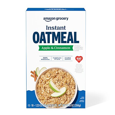 10-Count 1.23oz. Amazon Grocery Instant Oatmeal Package (Apple & Cinnamon)