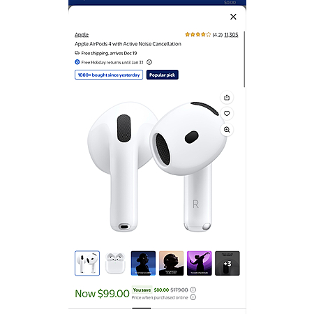Apple AirPods 4 Wireless Earbuds w/ Active Noise Cancellation & USB-C Charging Case (MXP93LL/A) on sale for