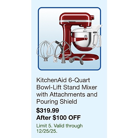 Costco - KitchenAid 6 Quart Bowl-Lift Stand Mixer with Attachments and Pouring Shield $319.99