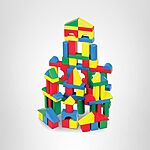 - Colorful Wooden Blocks Set: Includes 100 lightweight, yet durable, solid wood blocks in 4 colors and 9 classic shapes; pieces store neatly in the included sturdy cardboard toy box with carrying handle.