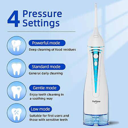 - 【4 Flossing Model to Suit Different Conditions】This water teeth cleaner picks has four cleaning intensities: powerful , standard, gentle and low. Catering to a wide range of oral care needs with varying levels of gentle to intense cleaning power. (Please choose low mode when you use low flosser at the first time)