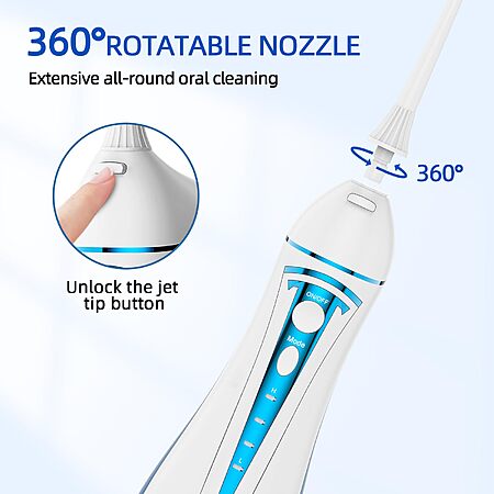 - 【Upgraded 300ml Extra-Large Water Tank】This water dental flosser features an upgraded 300ml water tank, it is enough for a 45 seconds full mouth clean. No need to refill or pour out the remaining water and make your oral cleaning more convenient and efficient