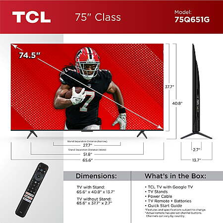 75″ TCL Q65 QLED 4K UHD Smart TV with Google TV (75Q651G, 2024 Model) $314.59 + Free Shipping