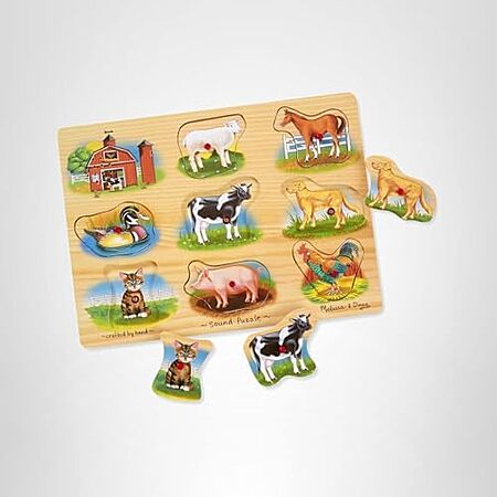 $6.29*: 9-Piece Melissa & Doug Farm Sound Wooden Peg Puzzle w/ Sound Effects at Amazon