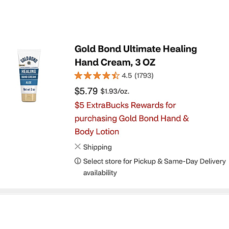 $5 Extra Care Bucks+ Gold Bond Ultimate Healing Hand Cream, 3 OZ $5.79
