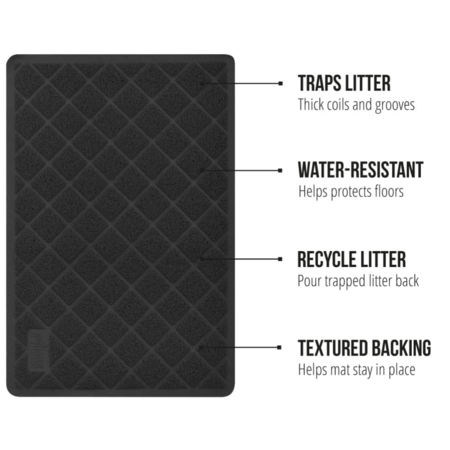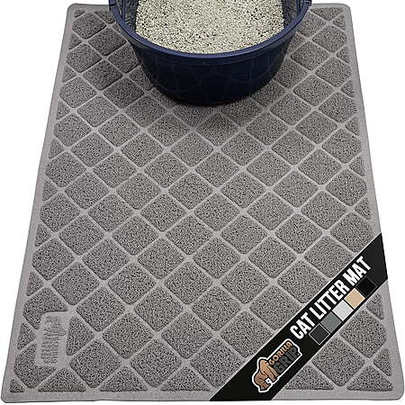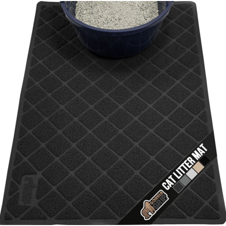 The Gorilla Grip Cat Litter Box Trapping Mat is ultra strong and built to last. The original litter trapper is constructed with thick mesh coils and deep grooves that effectively grab and contain excess kitty litter. The mat’s textured backing helps it stay in place even with active cats and kittens and is water-resistant to protect your floors from liquid messes. The anti tracking mat allows you to recycle more litter and is easy to clean. Incredibly gentle and soft on paws, it also makes a great spot for an afternoon cat nap. /!\ WARNING: PREVENT FALLS: Place mat on clean, dry floor only. Water under mat can cause it to slip. Ensure mat lies flat, especially at corners and edges. Do not place mat in high traffic areas. THE ORIGINAL LITTER TRAPPER: the cat mat is constructed from durable long-lasting materials; topside features thick mesh coils that effectively grab litter; deep grooves on the topside also collect litter, keeping it contained to the mat and off of your floors TEXTURED BACKING HELPS IT STAY IN PLACE: while other mats may shift around as your cat exits their litter box, resulting in litter all over your floors, our mat is designed with a textured backing that helps it to stay in place, even with active cats WATER RESISTANT: constructed from durable water-resistant materials, the cat mat is designed to not allow liquids to pass through, helping to keep liquid messes off your floors; mat also protect floors from scratching RECYCLE MORE LITTER AND EASY CLEAN: waste less litter; tip and pour collected litter back into the box to save money; excess litter can also be vacuumed or shaken out of mat; for a deep clean use mild soap and water, always air dry INCREDIBLY GENTLE AND SOFT ON PAWS: a durable mat that is super soft on sensitive paws, because your furry friend deserves the best; even makes a great spot for an afternoon cat nap