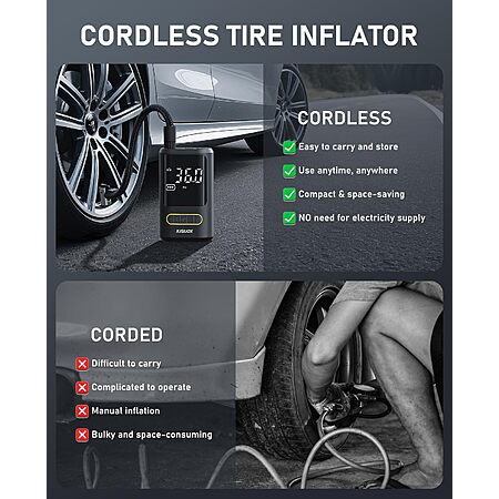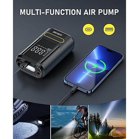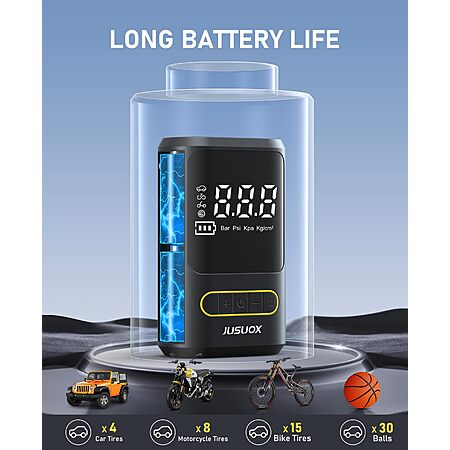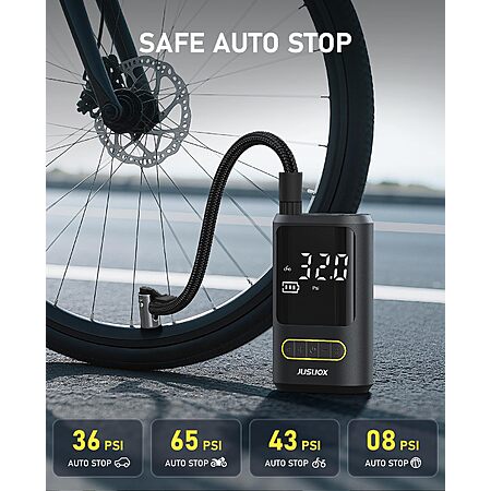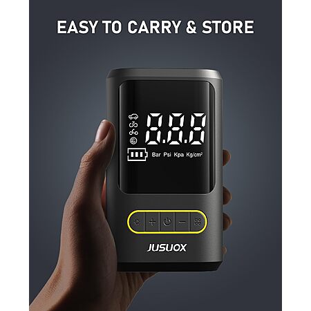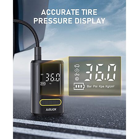Model: JUSUOX Tire Inflator Portable Air Compressor, Electric Bike Pump with Digital Pressure Gauge, 150 PSI Cordless Air Pump for Car Tires, Motorcycle, Bicycle, Ball with Auto Shutoff, LED Light