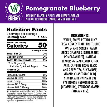 4-Pack 11.5-Oz V8 +ENERGY Sparkling Juice Drink (Pomegranate Blueberry) 7 for $19.96 w/ Subscribe & Save, w/5 S&S $16.83