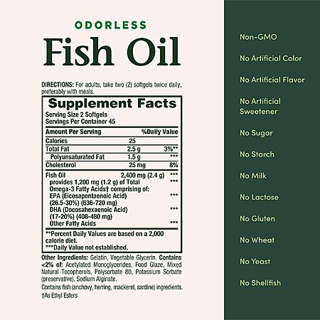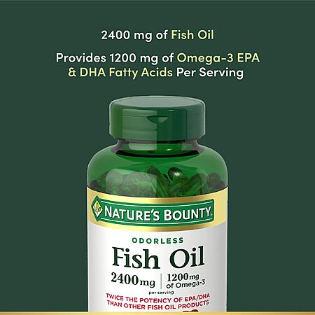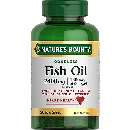 $8.70 90-Count Nature's Bounty Odorless Fish Oil 1200mg Omega-3 per Serving (600mg per softgel)