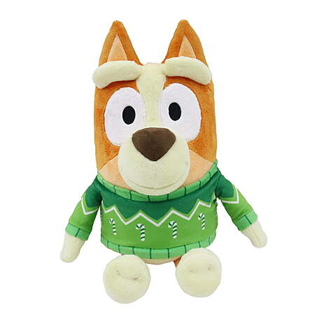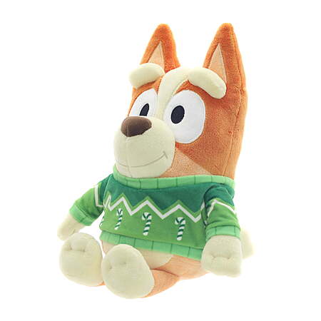 Festive Appearance: This cuddly Bingo plush toy is ready for the holidays, sporting a cheerful green holiday sweater.